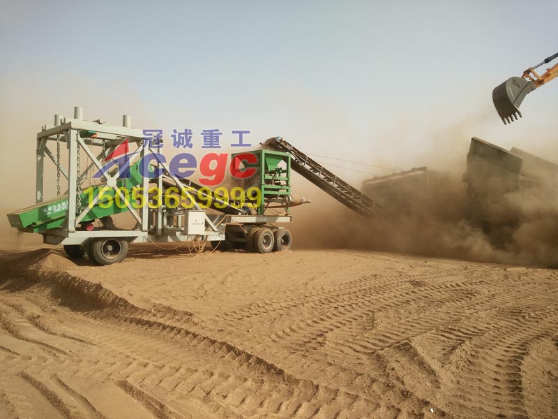 本套移动式旱地淘金车是我公司根据多年制作淘金设备经验,并且不断完善用户反馈信息,独立研发制作而成的一套新型干选金机械,适用于缺水、少水的戈壁滩、荒漠等干旱地区,比传统的选金设备具有以下主要优势: