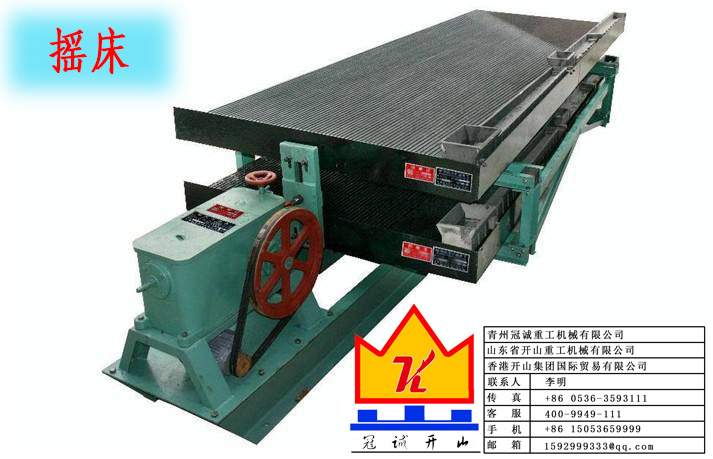 摇床选矿是选别细粒物料应用广泛的重选法之一,是以摇床为主要设备的选金过程。我国目前使用比较广泛的是衡阳式摇床、云锡式摇床和弹簧摇床三种。摇床是在水平介质流中进行选矿的设备,由床面和传动机构两部分组成,床面由传动机构带动作纵向往复运动。矿古在摇床上的分选是在床面往复运动过程中逐步完成的。促成矿粒运动的因素,除自身重力外,主要是冲流和床面差动运动。矿粒在运动中经受垂直于床面的分层作用和平行于床面的分离作用。两项作用的结果是不同矿粒自床面的不同区间排出。摇床根据所选别的矿石粒度的不同,可分为粗砂床(>0.5毫米)、细砂床(0.5~0.074毫米)和矿泥床(0.074~0.037毫米)三种。